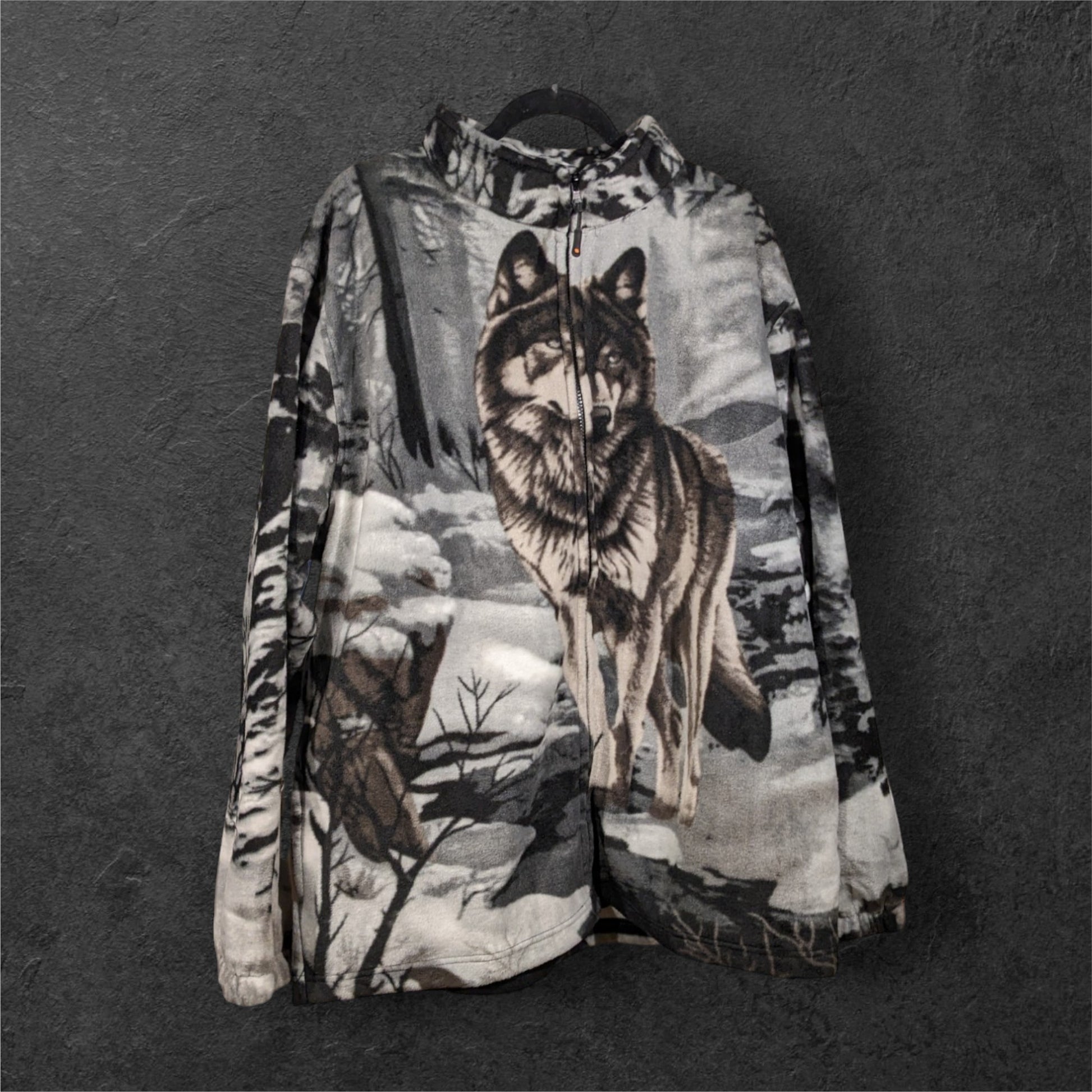 Stay warm and cozy while showcasing your love for wildlife with our Full Zip Fleece Wild Kind Gray Wolf Jacket. Made from 100% polyester, this soft and warm jacket features a full zip design. Perfect for outdoor adventures or lounging at home.